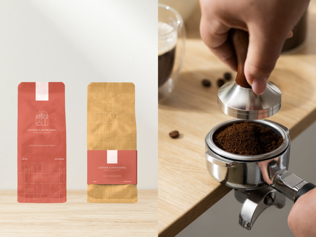 La identidad visual de Caffeine & Daydreaming se inspira en los matices del café y en la serenidad de las mañanas sin prisa.